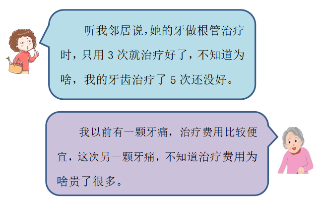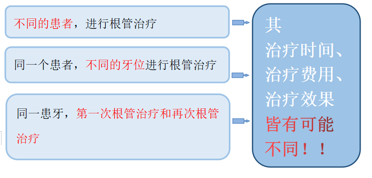有患者发现,不同的人,牙齿的治疗时间长短不定、治疗费用高低不等、治疗效果也存在差异;甚至有时候,同一个人口腔内的不同牙齿,其治疗的时间、费用、效果等也可能不一样。这是为什么呢?